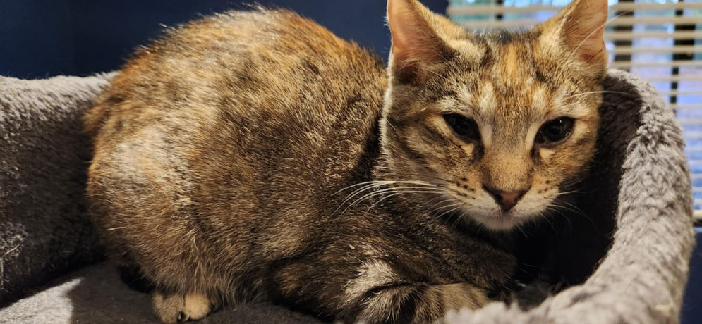 Star is a stunning tabby and torti mix girl. She adores playing with her siblings and running amok. She is slowly coming around and starting to realise that human company also isn't so bad.